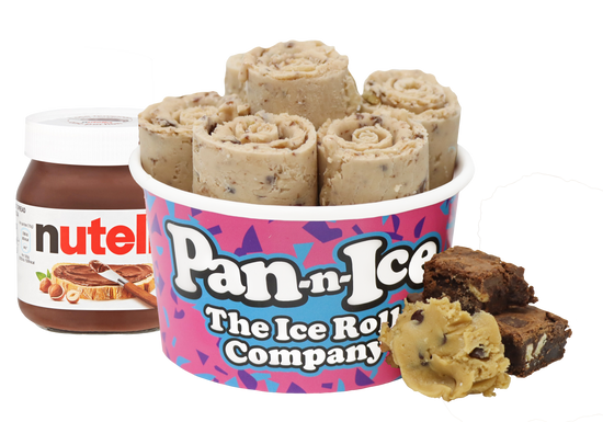 Nutella and Brownie Ice Rolls on a Bed of Warm Cookie Dough